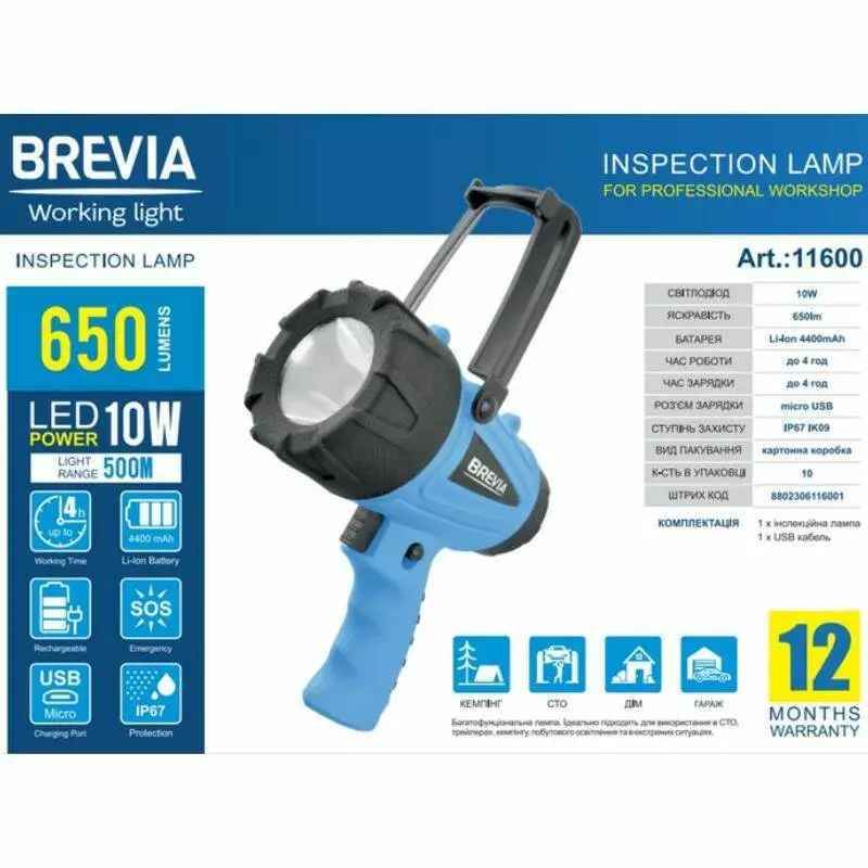 Фонарь инспекционный Brevia LED Професійний 4400mAh (11600) отлично помогает при работе в гараже (СТО). Можно использовать на рыбалке или охоте, кемпинге.