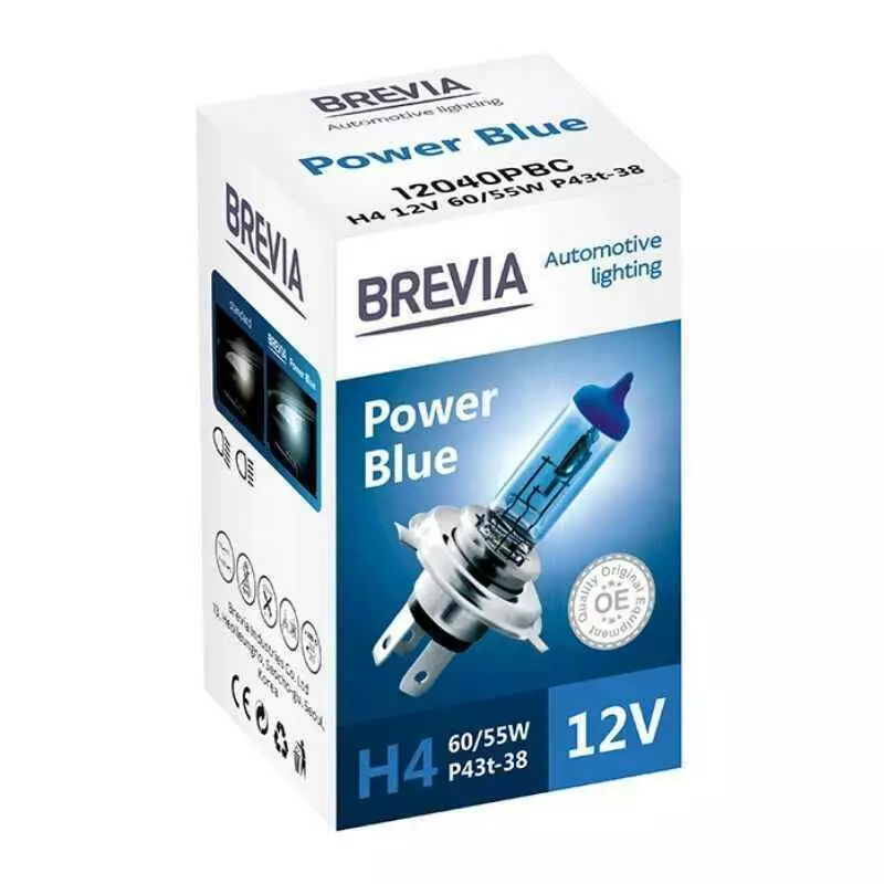 Галогеновая лампа BREVIA H4 POWER BLUE 12040PBC – в производстве данных ламп применяются инновационные технологии с использованием высококачественным материалов и производством лучших продуктов. Галогеновая лампа BREVIA H4 POWER BLUE 12040PBC соответствует высочайшим стандартам качества OEM, что позволяет вам максимально уверенно и эффективно передвигаться в темное время суток.