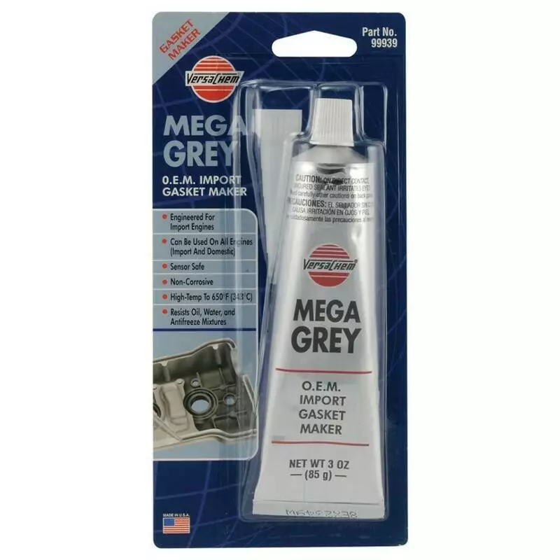 Серый герметик создает термостойкую водонепроницаемую прокладку любой формы, используется для восстановления большинства прокладок и гибких соединений, включая резину, пробковые покрытия, кожу, бумагу, композитные материалы и другие силиконовые прокладки. Выдерживает температуру до +343°С, устойчив к воздействию воды, охлаждающей жидкости, масла и трансмиссионной жидкости.