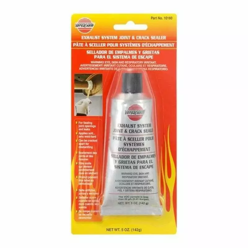 Термостойкий герметик Versachem Exhaust System Joint Crack Sealer (142 г) уплотняют отверстия и останавливают утечки в глушителях, выхлопных трубах и в местах соединений. Устанавливается как сварной шов. Делает новые системы более безопасными. Устойчив к монооксидным газам и высоким температурам.