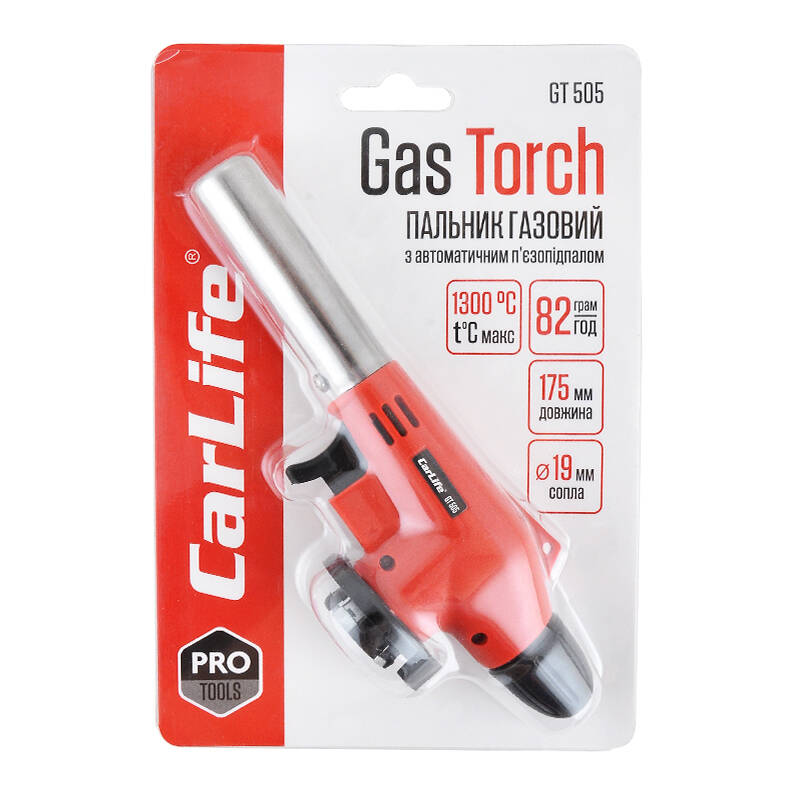 Горелка газовая с пьезоподжигом Carlife, сопло: Ø - 19мм, дл. - 68мм, керам. захист