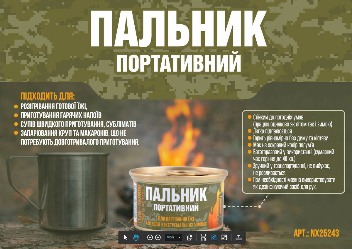 - Паливо: Гель-паливо
