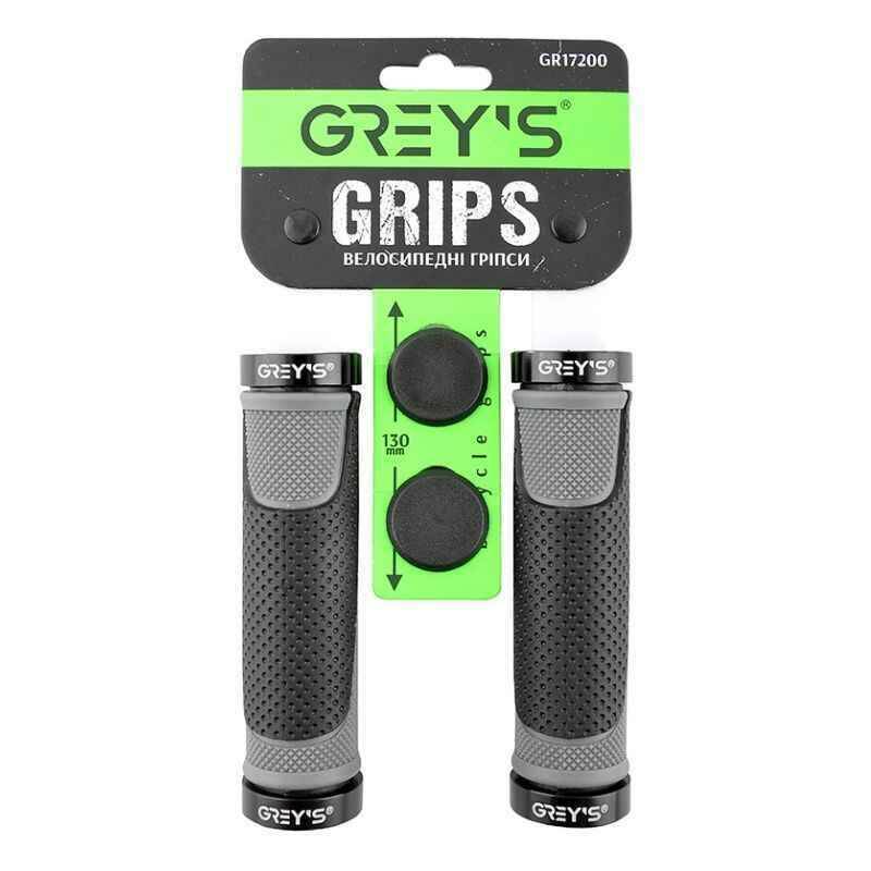 Грипсы на велосипед 13см Grey's с двухсторонним замком и заглушками