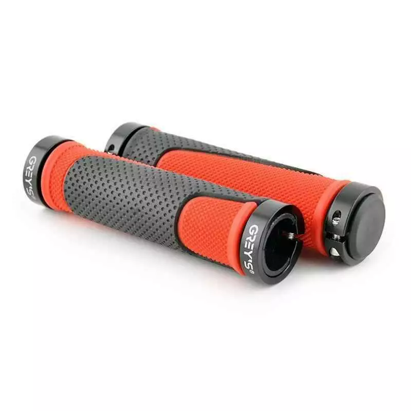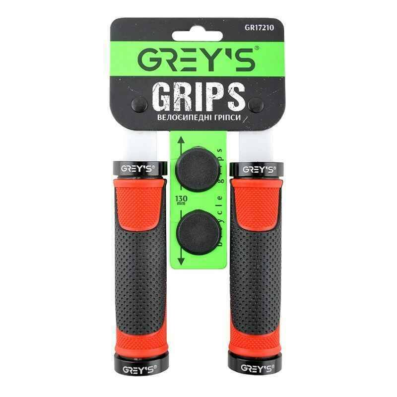 Грипсы на велосипед 13см Grey's с двухсторонним замком и заглушками красные 2шт (GR17210)