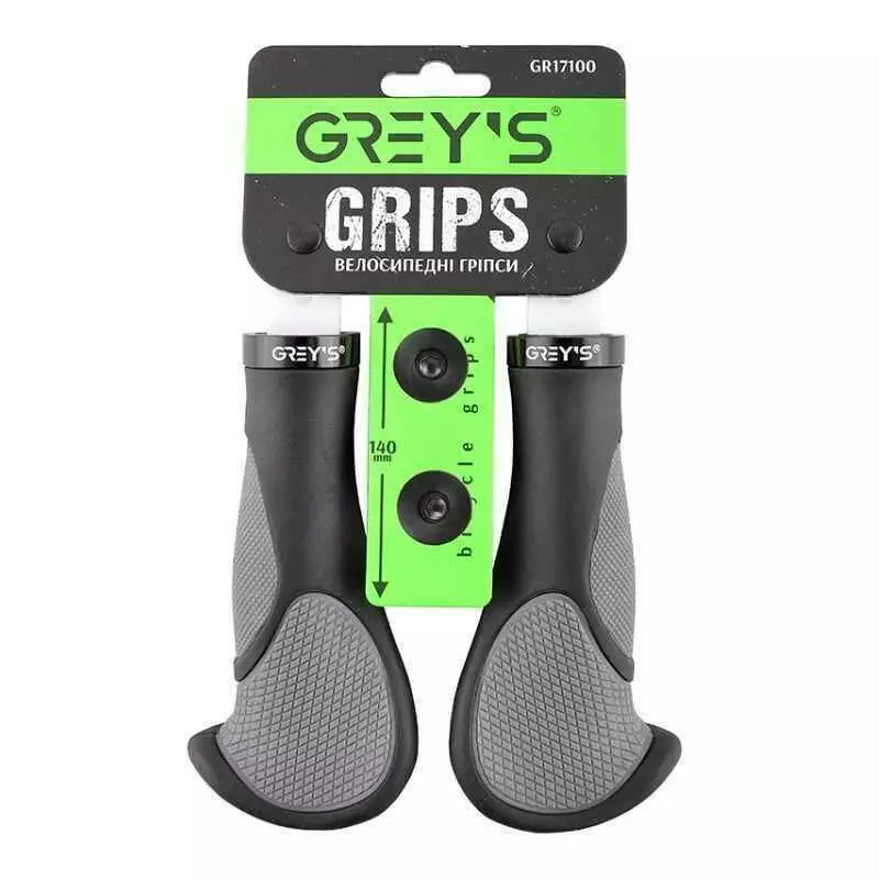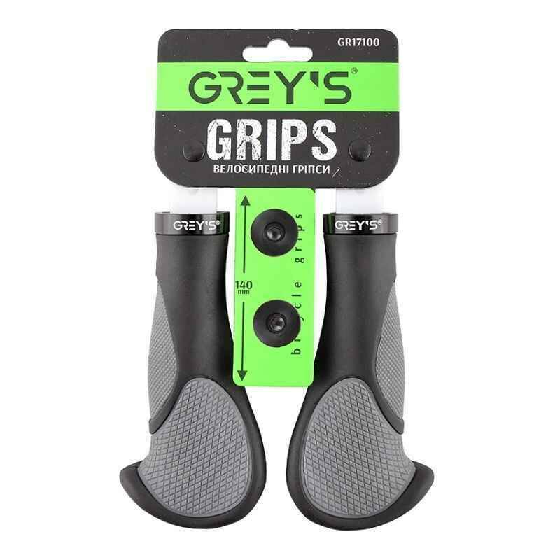 Грипсы на велосипед 14см Grey's с односторонним замком и заглушками эргономичная форма 2шт (GR17100)