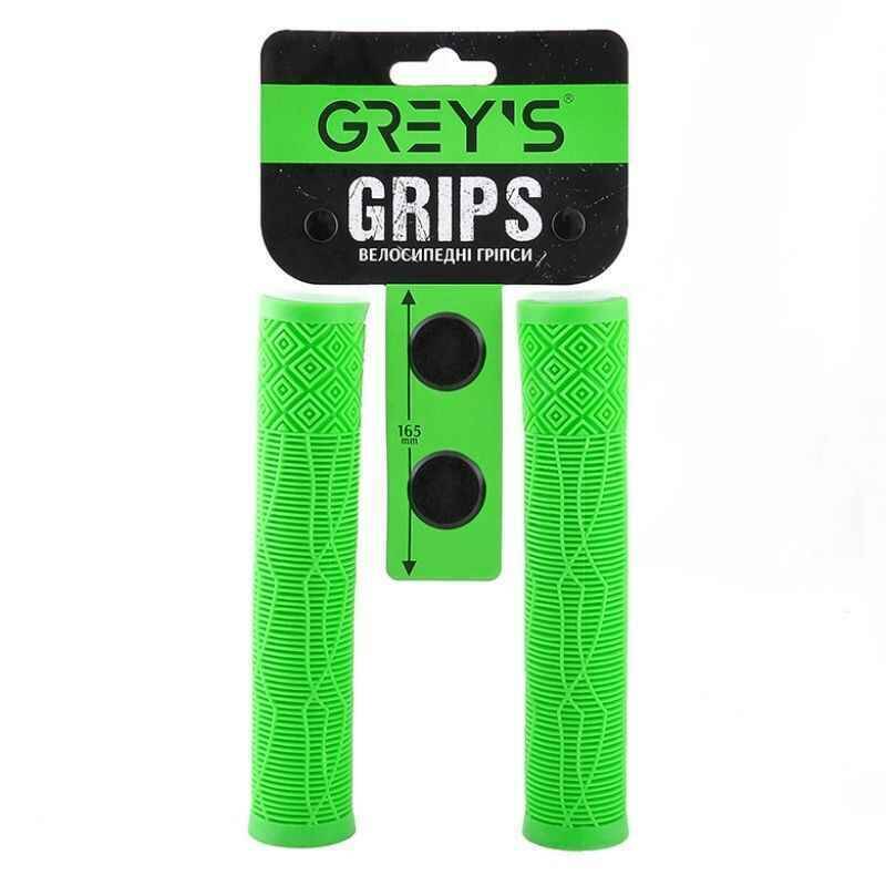 Грипсы на велосипед 16.5см Grey's без замка с заглушками зеленые 2шт (GR17620)
