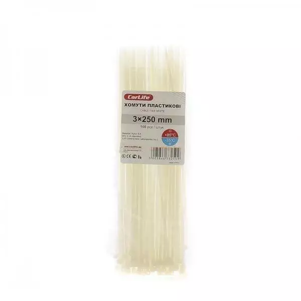 Хомути пластикові CarLife 3,0x250 (100шт.) білі