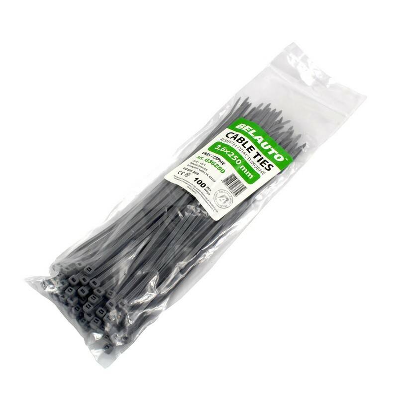 Хомуты пластиковые BELAUTO Серые 3,6x250 мм (G36250)