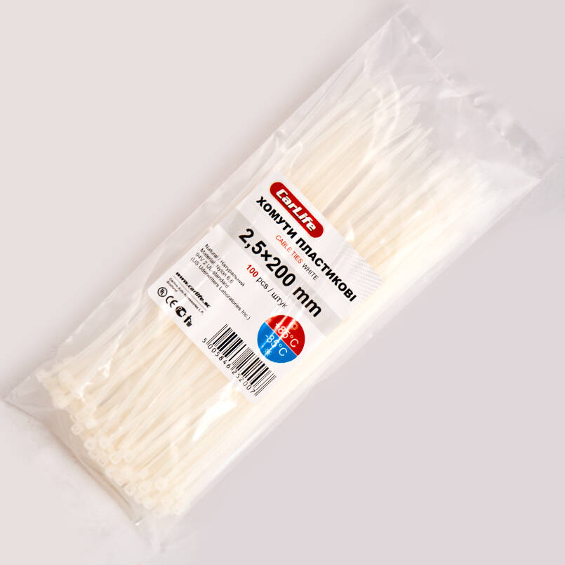 Хомуты пластиковые CARLIFE 2,5x200 мм Белые