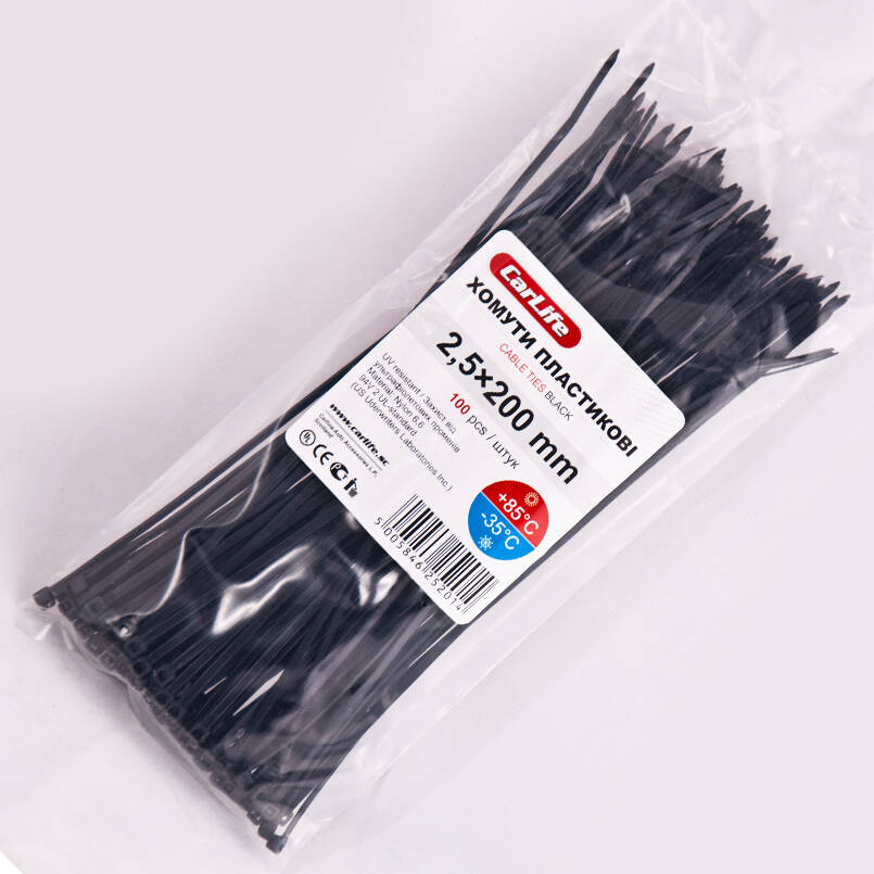 Хомуты пластиковые CARLIFE 2,5x200 мм Черные