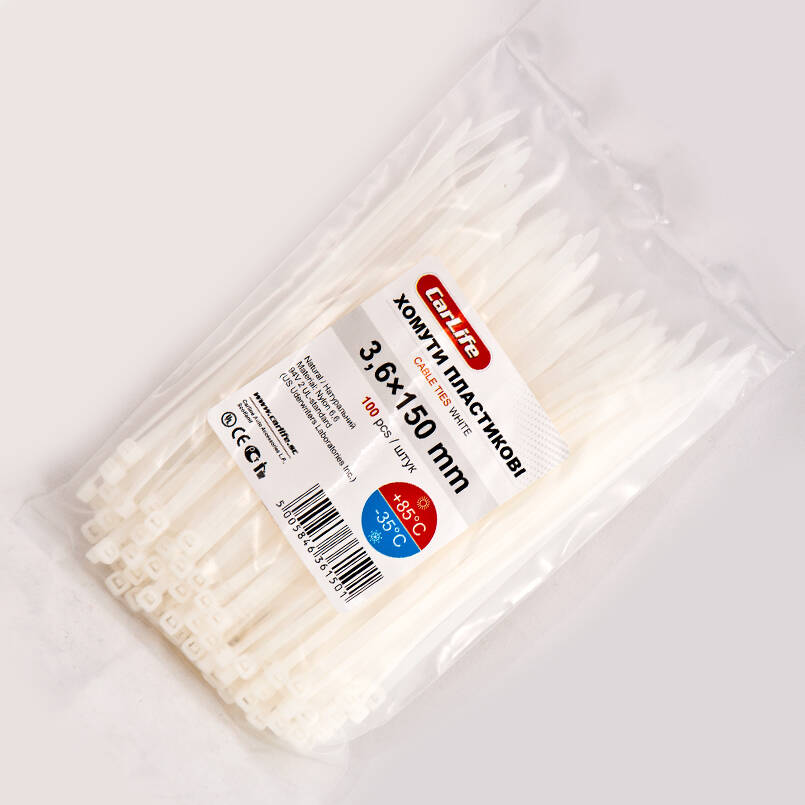 Хомуты пластиковые CARLIFE 3,6x150 мм Белые