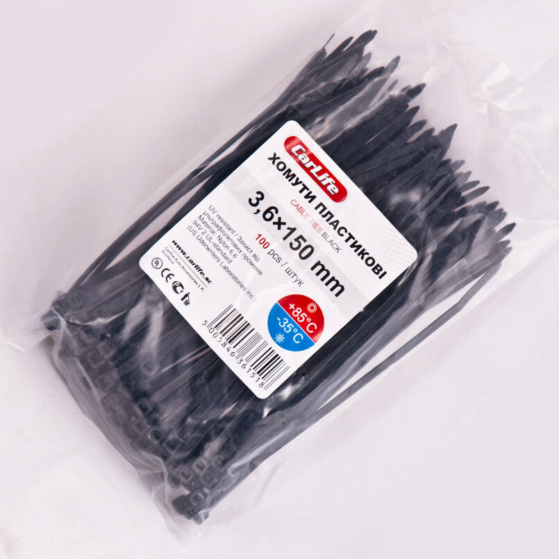 Хомуты пластиковые CARLIFE 3,6x150 мм Черные