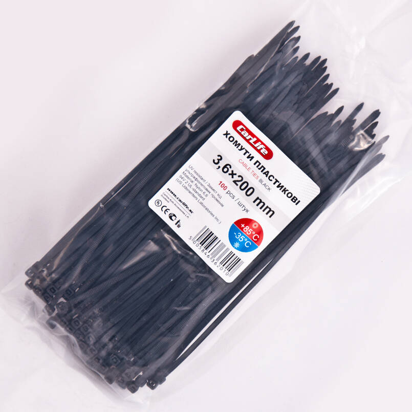 Хомуты пластиковые CARLIFE 3,6x200 мм Черные