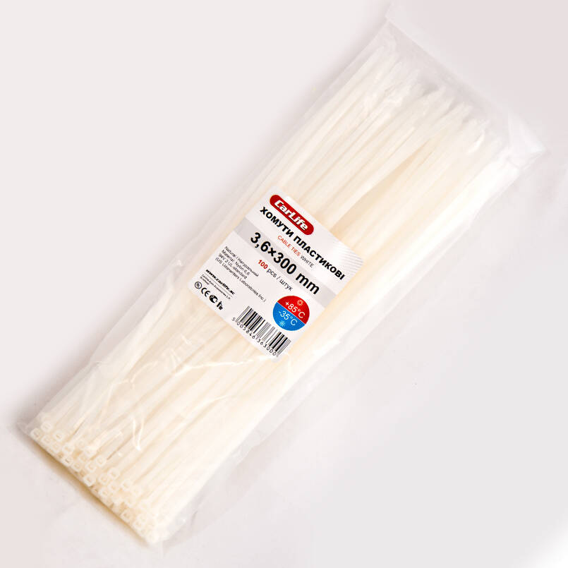 Хомуты пластиковые CarLife 3,6 x 300 белые