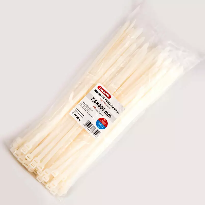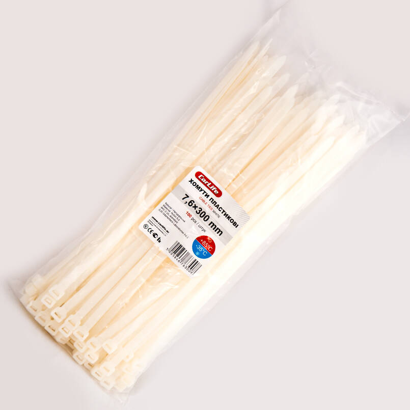 Хомуты пластиковые CARLIFE 7,6x300 мм Белые