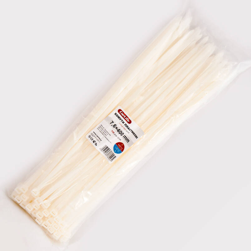 Хомуты пластиковые CARLIFE 7,6x400 мм Белые