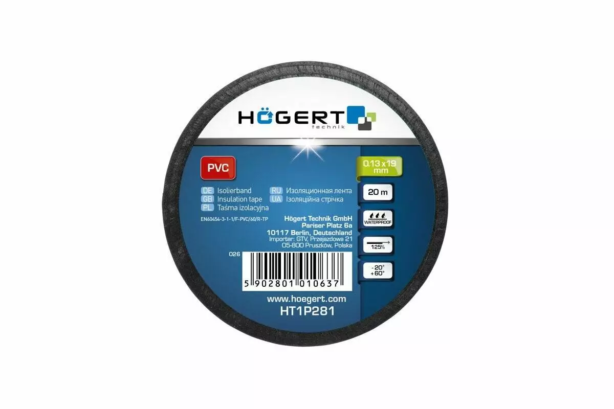 Изоляционная лента 0,13x19мм x 20м, чёрная (HT1P281)