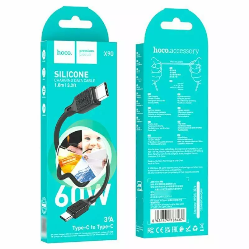 Кабель HOCO Type-C Cool silicone charging data cable X90 |1m, 3A| (black)