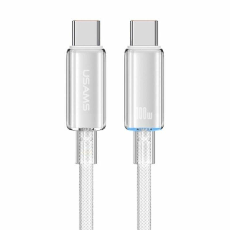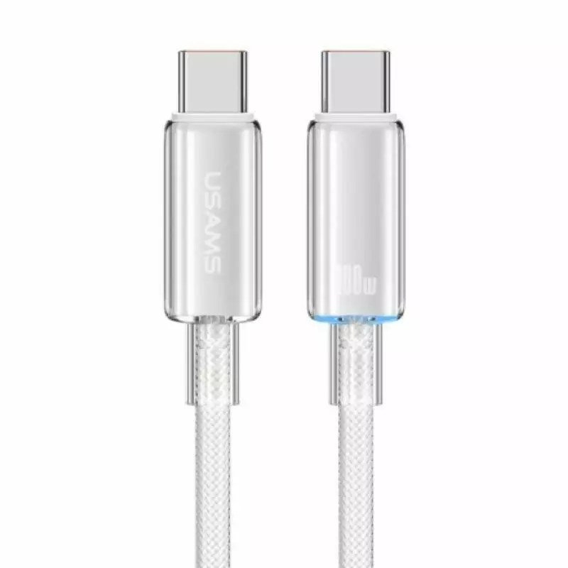 Кабель Usams Type-C To Type-C PD100W Fast Charging With Light--Cloud Series 1.2M Білий