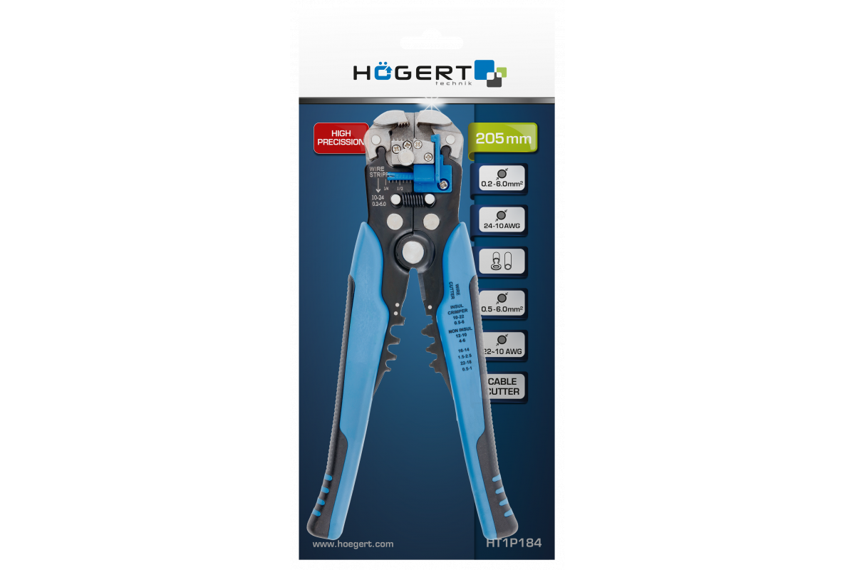 Клещи автоматические для зачистки проводов диаметром от 0,25 до 6.0 мм2 (HT1P184)