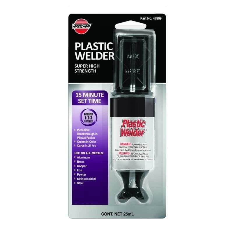 2-х компонентная «холодная сварка» для пластика Plastic Welder 47809 (25 мл) – предназначена для склеивания акрила, керамики, фарфора, стекловолокна, стекла, большинства металлов, большинства тяжелых пластиков, ПВХ, стирола, винила, дерева. Устойчива к воздействию большинства технических жидкостей, выдерживает давление до 240 кг/см2.