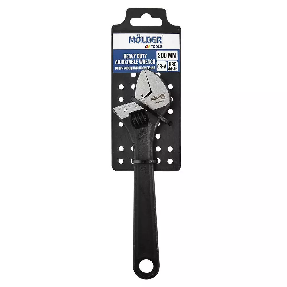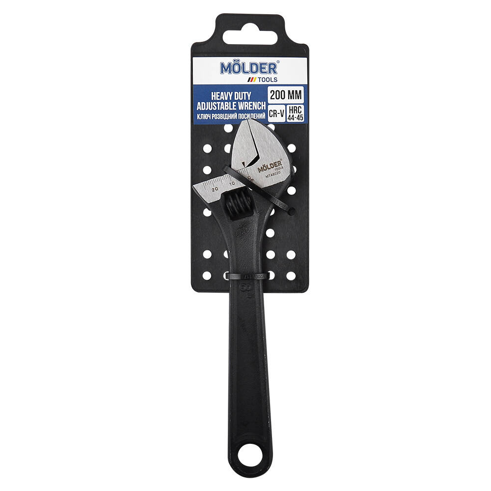 Ключ розвідний посилений MOLDER 200мм, макс діаметр 24мм, Cr-V, HRC 44-45, вимірюв. шкла (60шт/ящ)