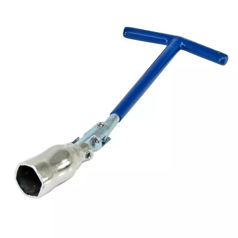 Конструкция ключа состоит из длинного стержня, на одном конце которого расположена рукоять, а на другом – головка с шарниром. Подвижное шарнирное соединение делает инструмент более маневренным, а работу в стесненном подкапотном пространстве более удобной, кроме того, шарнир помогает подобрать оптимальный угол, чтобы бережно демонтировать или установить свечу. Головка ключа оснащена шестигранным профилем, который эффективно передает усилие на профиль свечи.