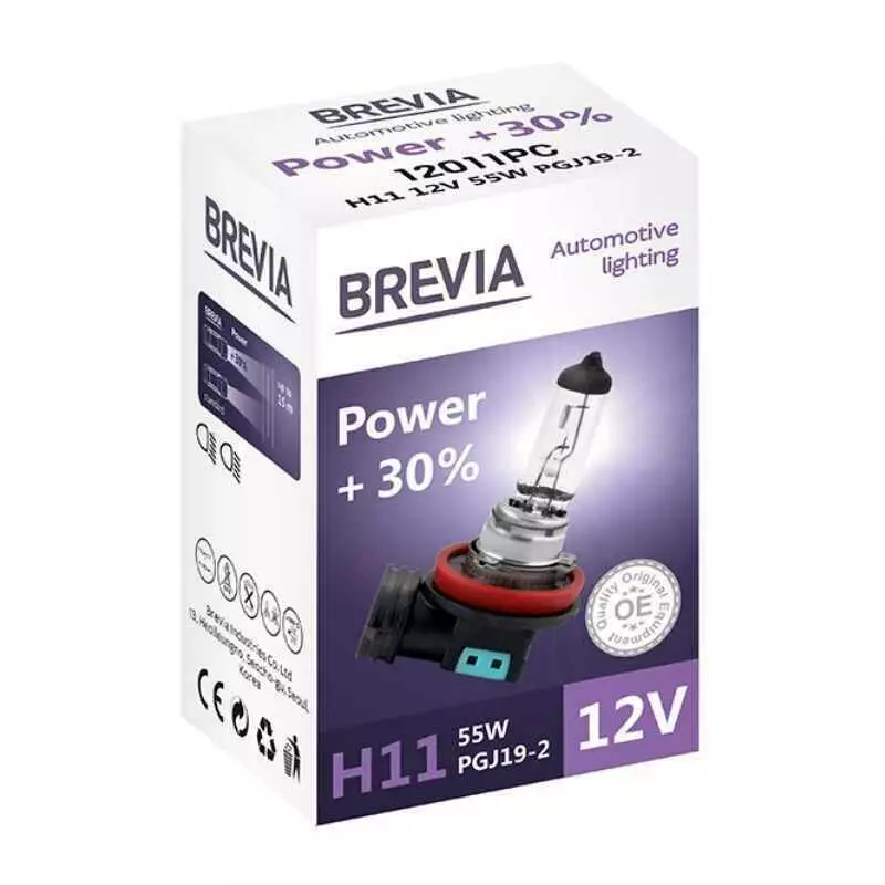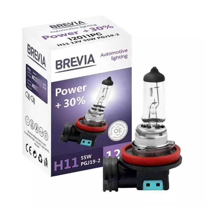 Галогеновая лампа BREVIA H11 POWER +30% 12011PC – в производстве данных ламп применяются инновационные технологии с использованием высококачественным материалов и производством лучших продуктов. Галогеновая лампа BREVIA H11 POWER +30% 12011PC соответствует высочайшим стандартам качества OEM, что позволяет вам максимально уверенно и эффективно передвигаться в темное время суток.