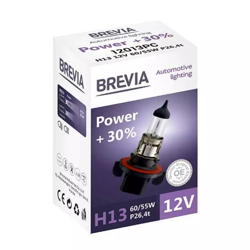 Лампа галогенная H13 Brevia Power +30% 1шт (12013PC)