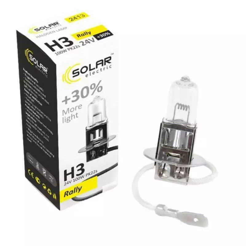 Галогеновая лампа SOLAR H3 +30% 24V 2413 – данное световое решение для водителей, которые ищут баланс между ценой и качеством и при этом не хотят переплачивать за бренд. Галогеновая лампа SOLAR H3 +30% 24V 2413 обладает прекрасными характеристиками и является прекрасным решением для замены вашей штатной галогеновой лампочки. Прекрасно устанавливается в штатные места и эффективно работает на протяжении заявленного срока службы.