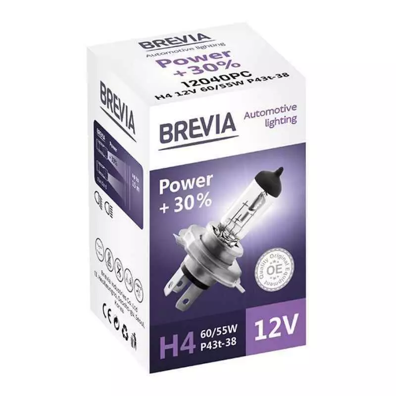 Особенности лампы BREVIA H4 POWER +30% 12040PC: