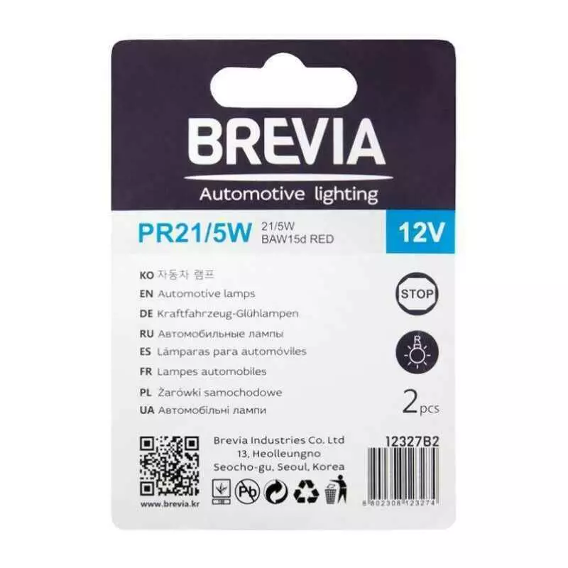 Лампы галогенные Brevia PR21/5W 12V Красные 2шт (12327B2)