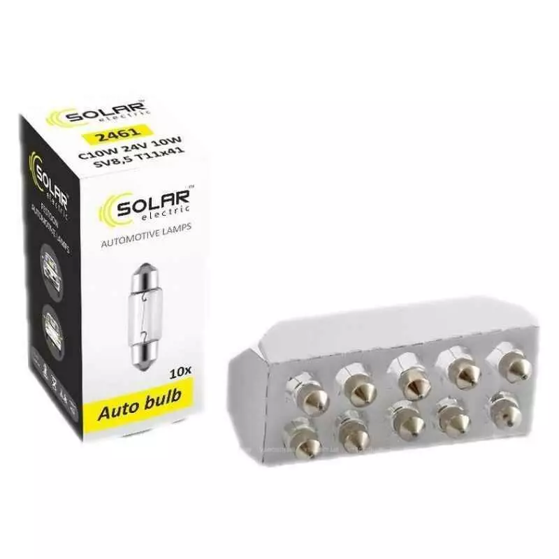 Лампы галогенные Solar C10W T11x41 24V 10 штук (одна упаковка) (2461)