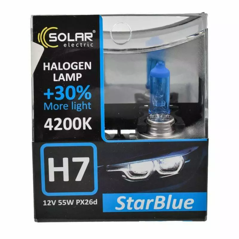 В производстве данных ламп применяются инновационные технологии с использованием высококачественным материалов и производством лучших продуктов. Галогеновая противотуманная лампа Solar H7 12V 55W PX26d StarBlue 4200K (1247S2) соответствуют высочайшим стандартам качества OEM, что позволяет вам максимально уверенно и эффективно передвигаться в темное время суток.