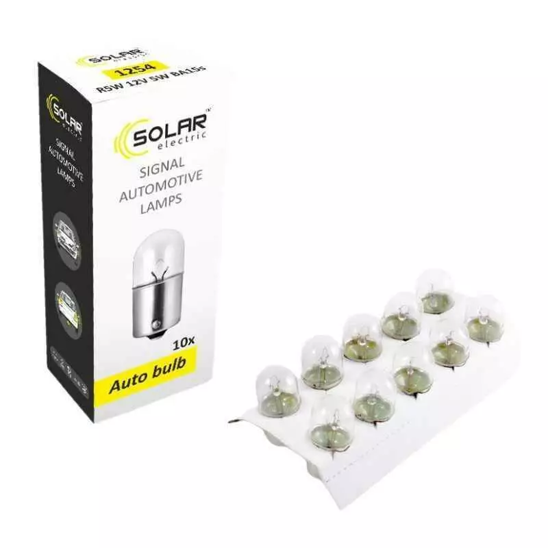 Это лампочка накаливания от компании SOLAR, которые применяются во внешнем освещении для передних и задних указателей поворотов, габаритных и стояночных огней, сигналов заднего хода и торможения, а также подсветки номерного знака. При ярком излучении они помогают своевременно сообщить о своих намерениях другим участникам дорожного движения, во избежании аварийных ситуаций, при любых погодных условиях. Конструкция устойчивая к вибрациям и выдерживает экстремальные нагрузки, тем самым увеличивается срок службы. Колба неокрашенная, прозрачная, изготовлена из качественного стекла. Размер стандартный, соответствует посадочному месту, длина 37,5 мм. Установка таких лампочек очень проста, Вы это можете сделать самостоятельно, в домашних условиях, главное не притрагиваться к колбе лампочки, что бы не оставлять отпечатки пальцев, а так же желательное её предварительно протереть спиртом.
