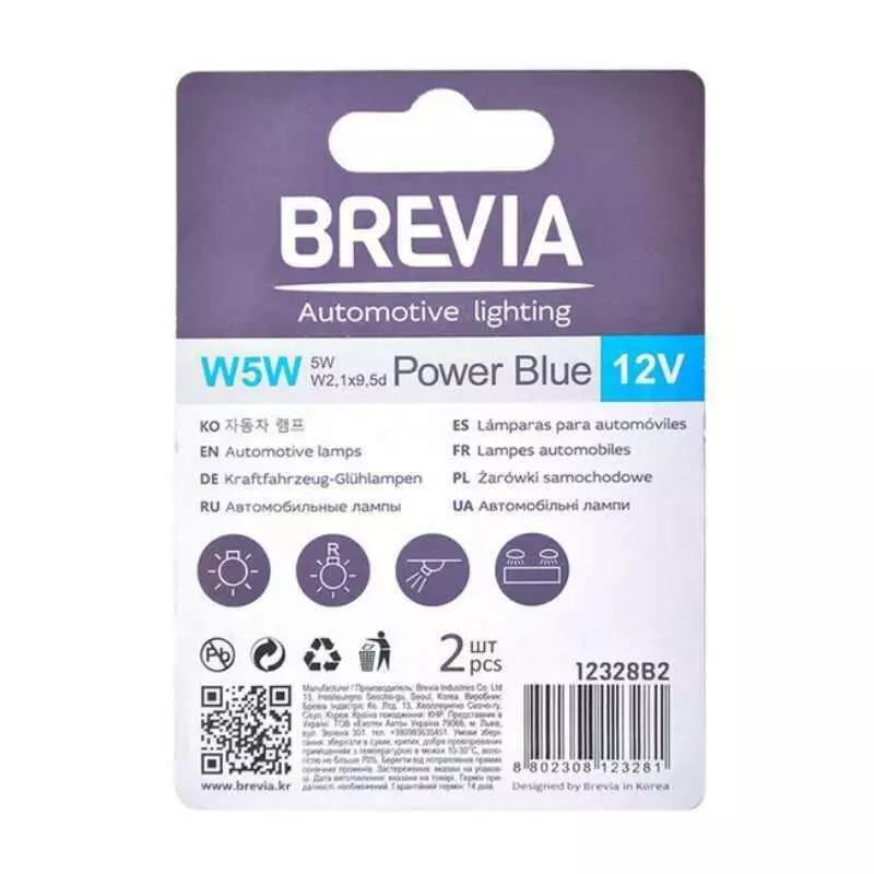 Лампы галогенные W5W Brevia 12V синие 2шт (12328B2)