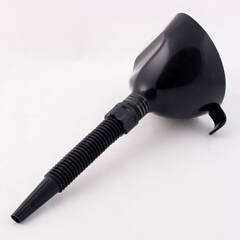 Особенно универсальна – гофрированный носик позволяет использовать лейку с любыми горловинами и держать воронку под любым углом, который требуется в конкретном случае, независимо от расположения заправочного отверстия, что невозможно при использовании классической лейки с прямым или косым жёстким носиком.