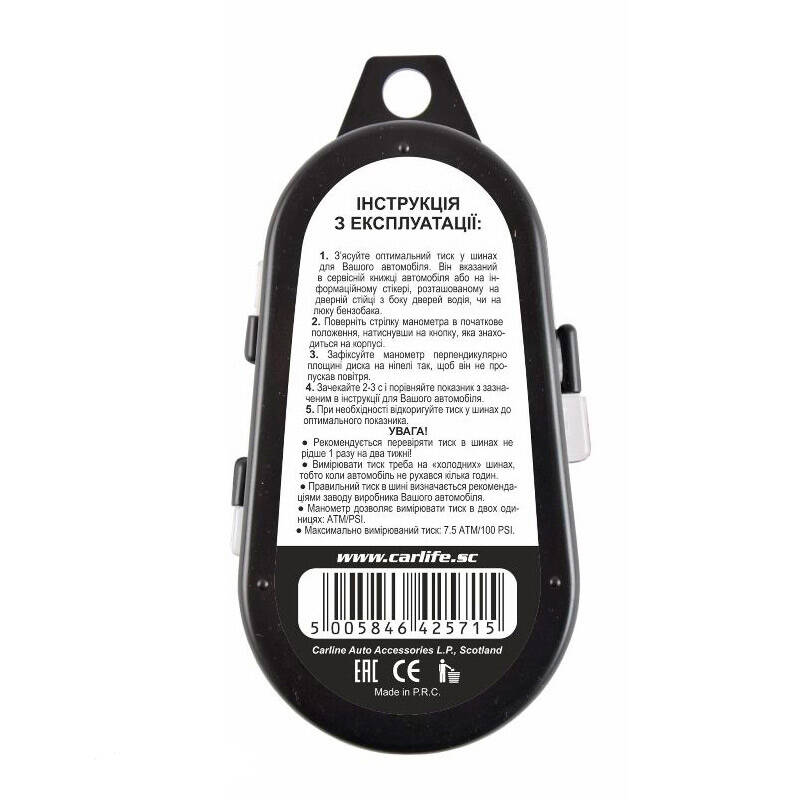 Манометр CarLife TG571/P – измерительный прибор, предназначенный для измерения давления в шинах автотранспортных средств. Данный прибор позволит постоянно соблюдать оптимальное давление в шине, позволяющее предотвратить чрезмерный износ резины и улучшить стойкость автомобиля на дорогой, обеспечивая при этом комфортную и безопасную езду.