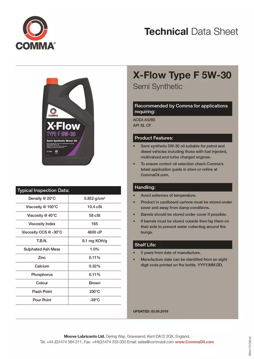 Моторна олива Comma X-FLOW TYPE F 5W-30 API SL/CF; ACEA A5/B5 4л