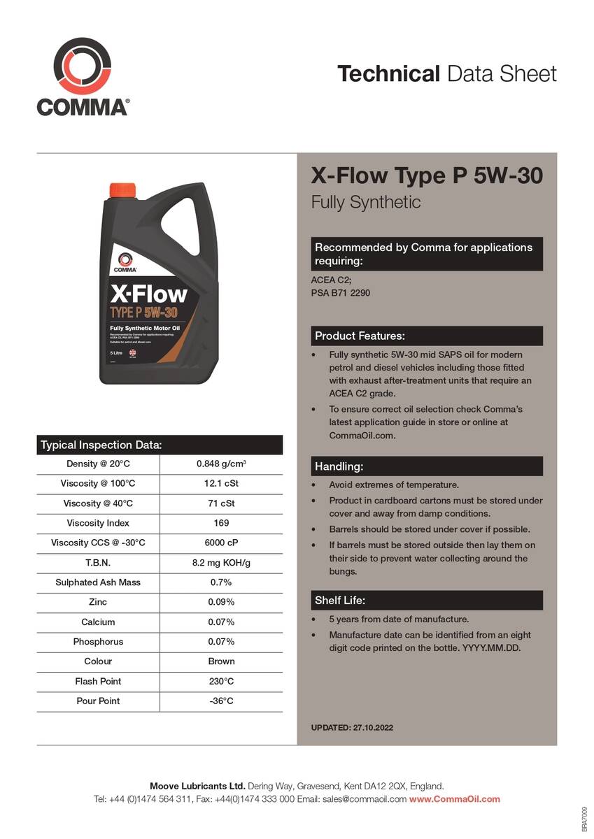 Моторна олива Comma X-FLOW TYPE P 5W-30 API CF/SM; ACEA C2 5л