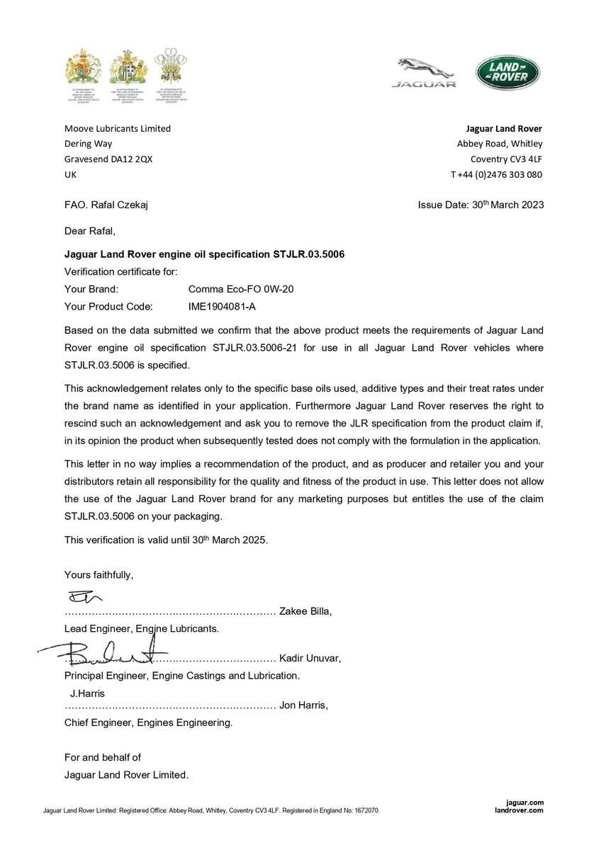 - Допуски ОЕМ: Ford WSS-M2C952-A1, MB 229.71, OV0401547, STJLR.03.5006.
