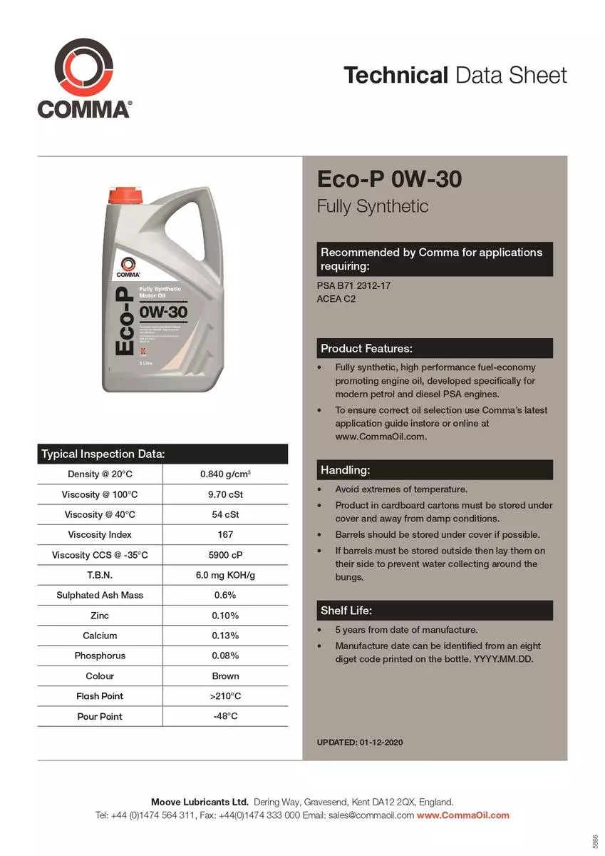 Моторное масло Comma ECO-P 0W-30 ACEA C2 5л (4шт/уп)
