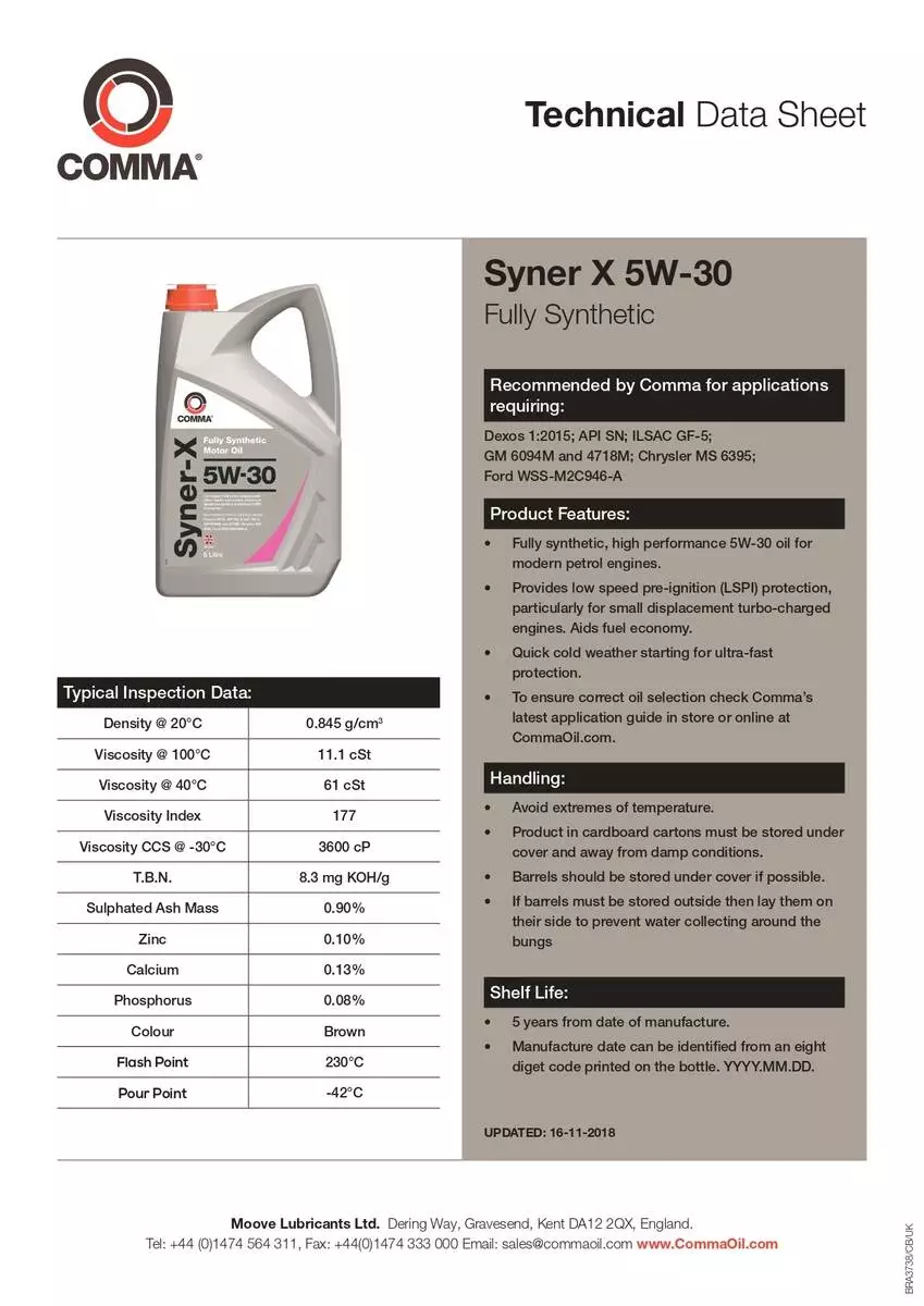 Моторное масло Comma SYNER-X-5W-30 API SN 5л (4шт/уп)