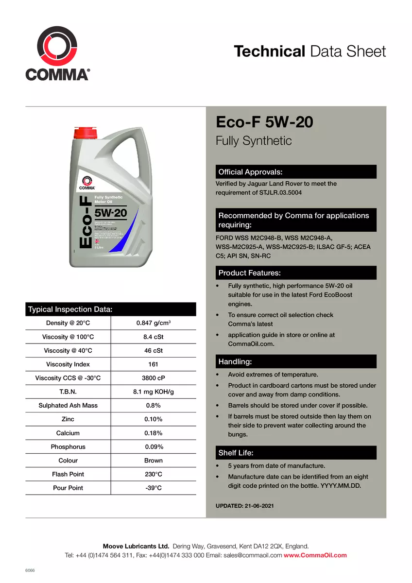 Моторное масло Сomma ECO-F 5W-20 API SN, SN-RC; ACEA C5 5л (4шт/уп)