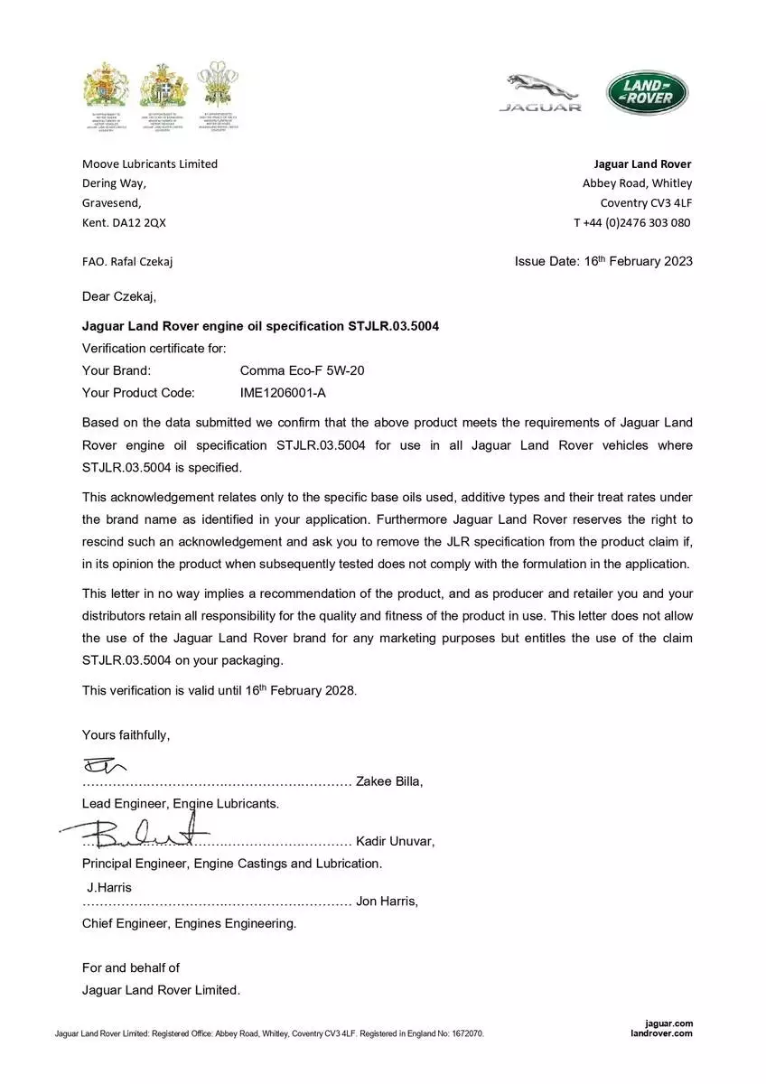 - Допуски ОЕМ: Jaguar Land Rover STJLR.03.5004