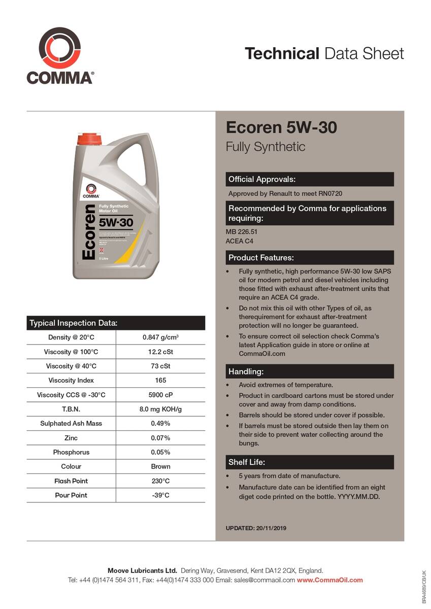 Моторное масло Сomma ECOREN 5W-30 ACEA C4 1л (12шт/уп)