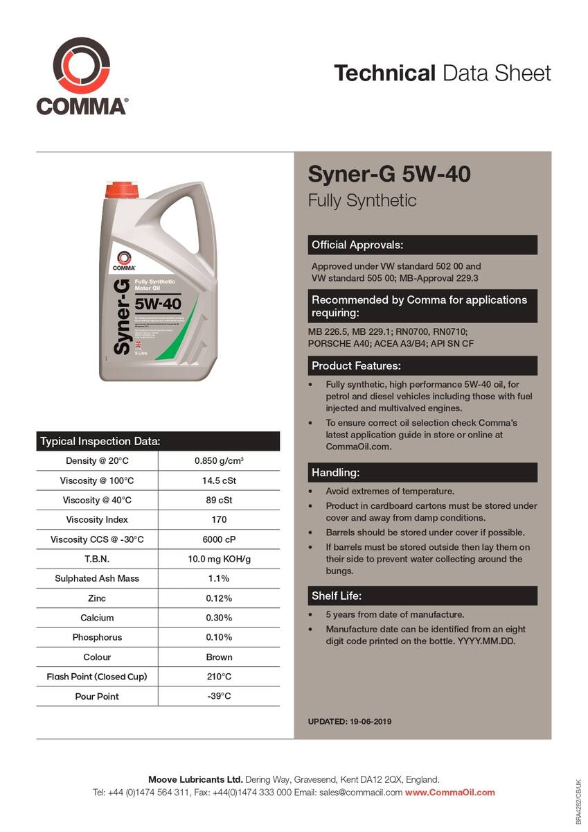 - В’язкість за SAE: 5W-40