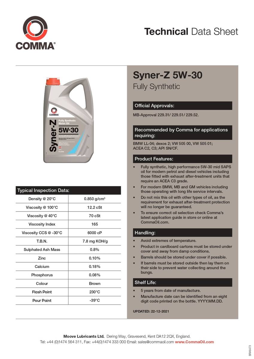 Моторное масло Сomma SYNER-Z 5W-30 API SN, CF; ACEA C2, C3 60л