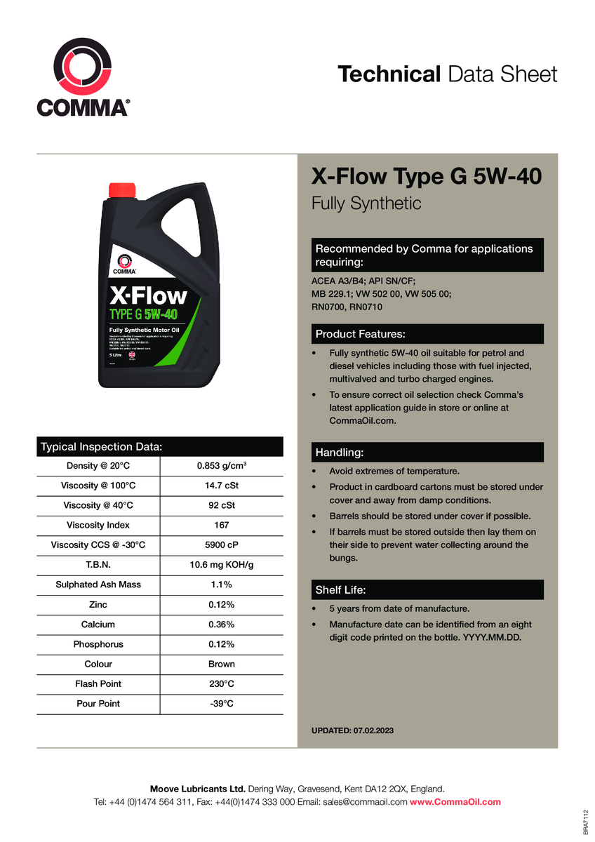 Моторное масло Сomma X-FLOW TYPE G 5W-40 API SL/CF; ACEA A3/B4 4л (4шт/уп)