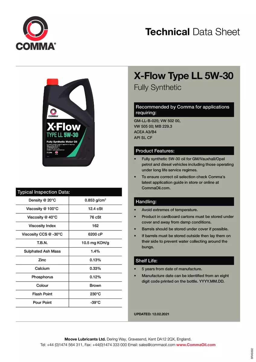 Моторное масло Сomma X-FLOW TYPE LL 5W30 API SL/CF; ACEA A3/B4 1л (12шт/уп)